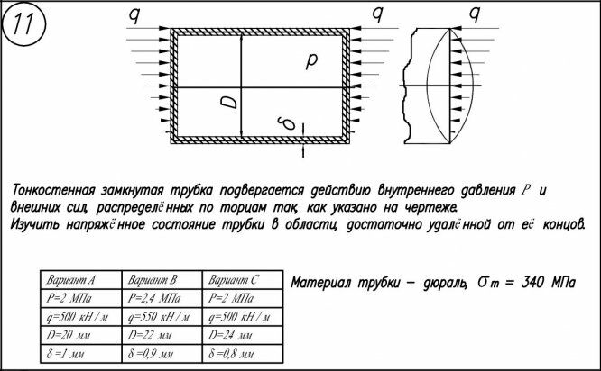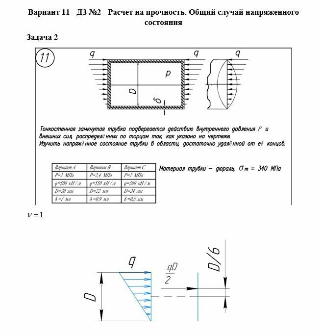 2022 г Вариант 11 - ДЗ №2 - Расчет на прочность - Задача 2 (Вариант А+В+С)