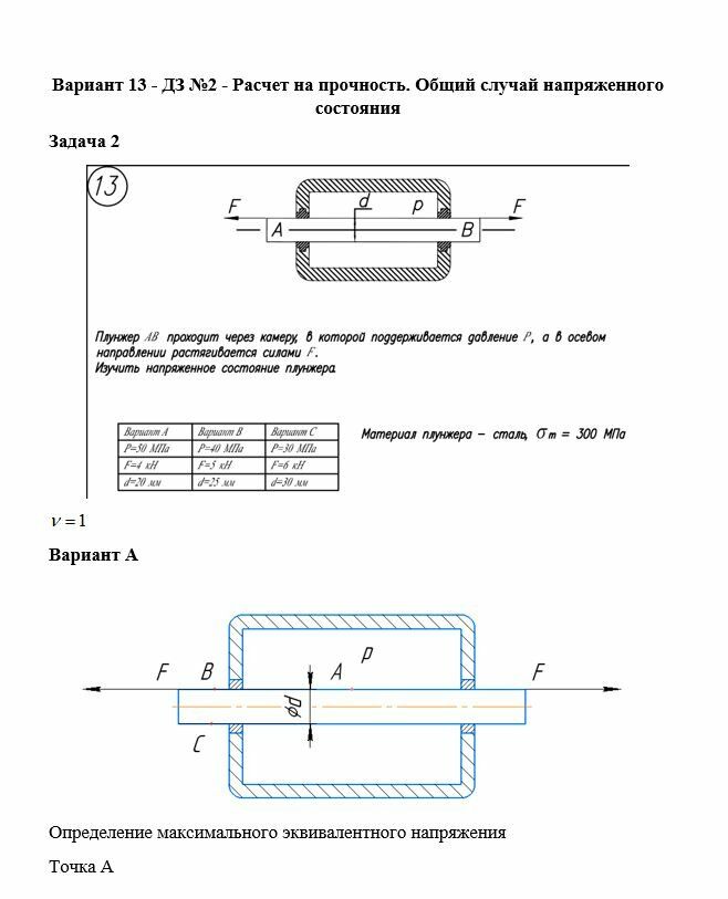 2022 г Вариант 13 - ДЗ №2 - Расчет на прочность - Задача 2 (Вариант А+В+С)