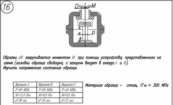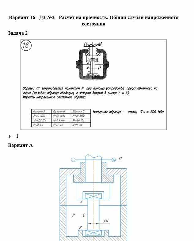 2022 г Вариант 16 - ДЗ №2 - Расчет на прочность - Задача 2 (Вариант А+В+С)