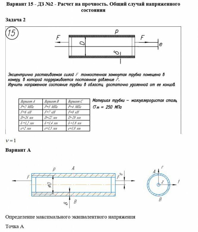 2022 г Вариант 15 - ДЗ №2 - Расчет на прочность - Задача 2 (Вариант А+В+С)