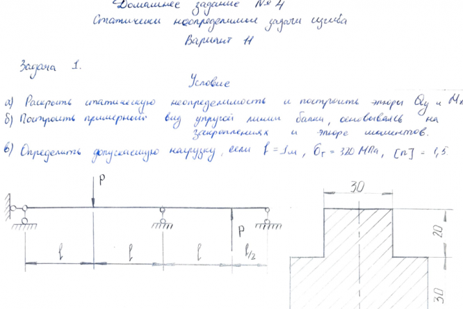 Домашнее задание №1, задачи 1 и 2, "Статически неопределимые задачи изгиба", зачтено