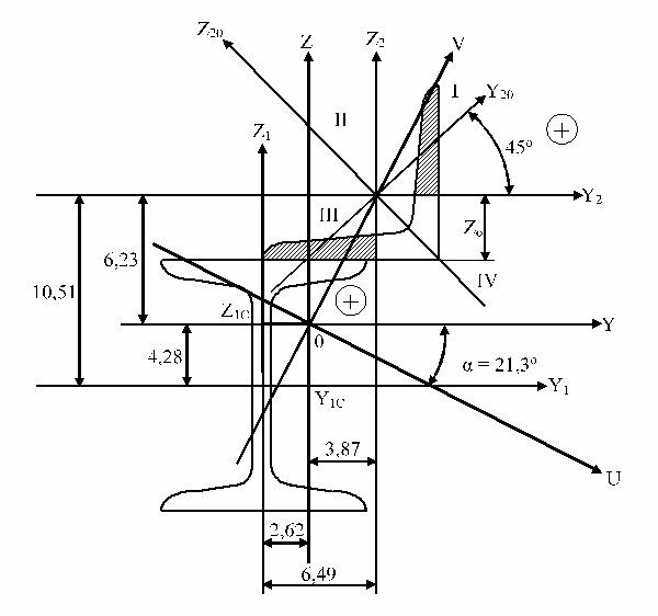 4. Найти моменты инерции относительно главных центральных осей Iu и Iv (главные моменты инерции).
