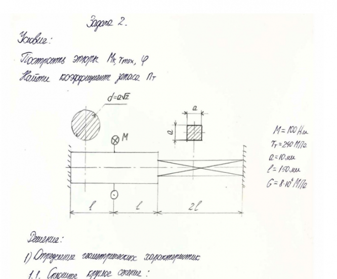Типовой расчет по сопротивлению материалов №2 "Кручение", задача № 2.3, зачтено