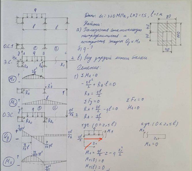 Статически неопределимые задачи изгиба - Задача 1.pdf