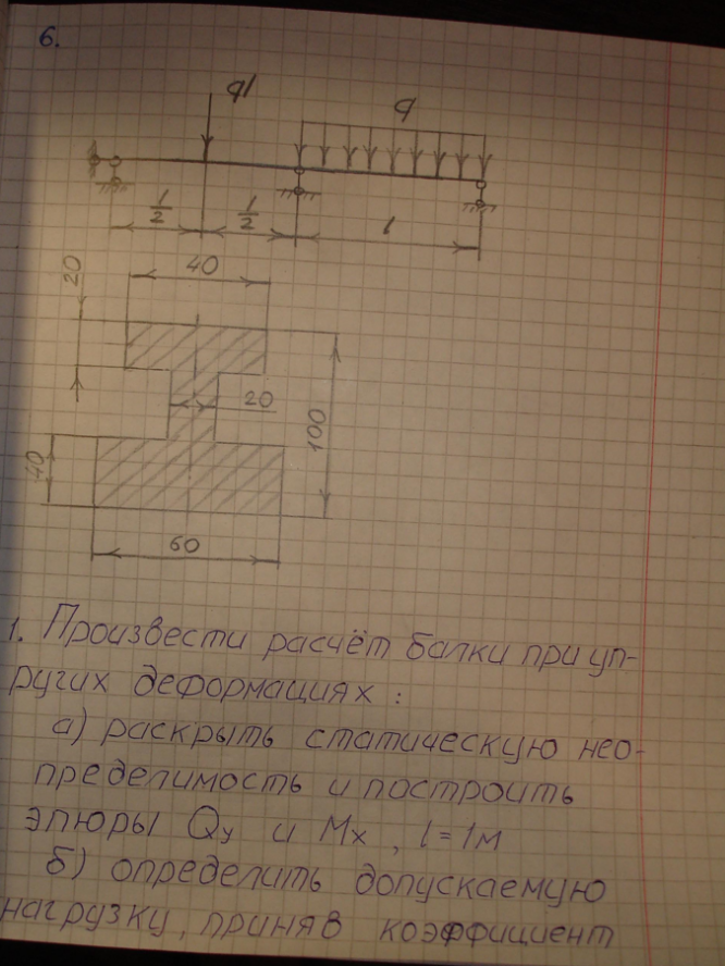 Вариант 6 - Задание № 5.1 - Статически неопределимые задачи изгиба