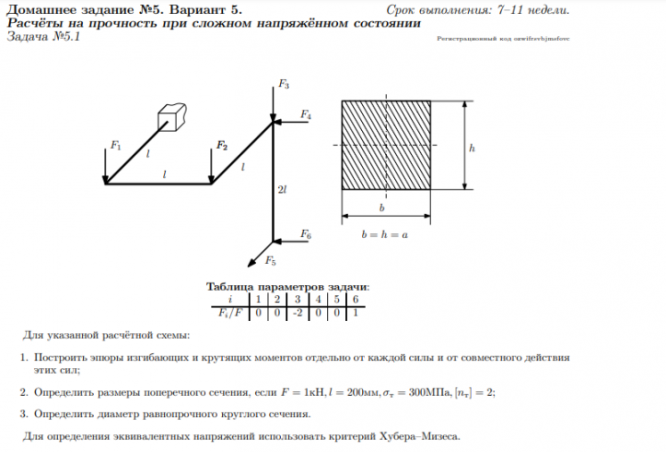Для студентов МГТУ им. Н.Э.Баумана по предмету Сопротивление материаловЗадача 5.1Задача 5.1