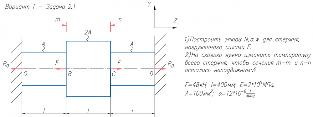Для студентов МГТУ им. Н.Э.Баумана по предмету Сопротивление материаловЗадача 2.1Задача 2.1