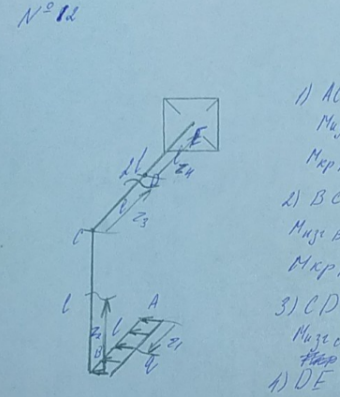 Типовой расчет по сопротивлению материалов №1 "Построение эпюр внутренних силовых факторов", задача № 12, зачтено