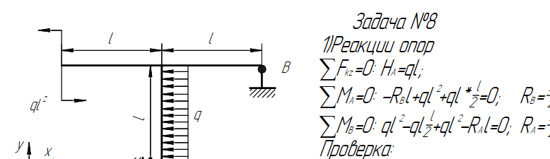 Вариант 8 - Построение эпюр внутренних силовых факторов - Задача 8