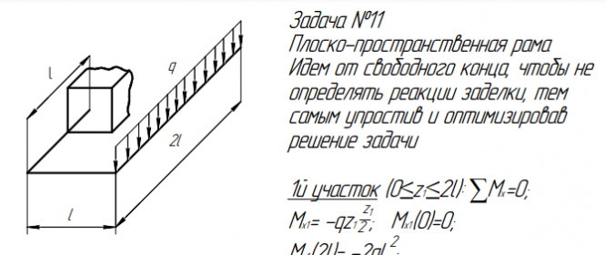 Вариант 8 - Построение эпюр внутренних силовых факторов - Задача 11