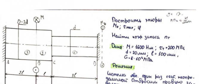Типовой расчет по сопротивлению материалов №2 "Кручение", задача № 2.3, зачтено