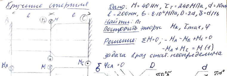 Типовой расчет по сопротивлению материалов №2 "Кручение", задача № 2.3, зачтено