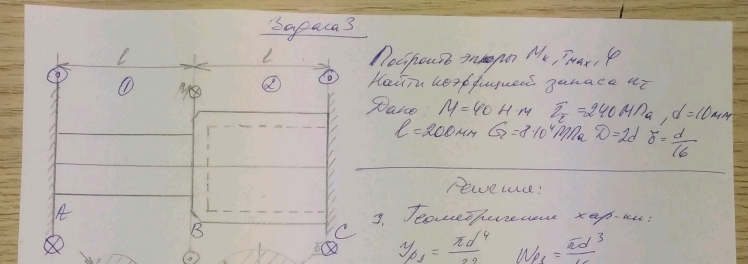 Типовой расчет по сопротивлению материалов №2 "Кручение", задача № 2.3, зачтено