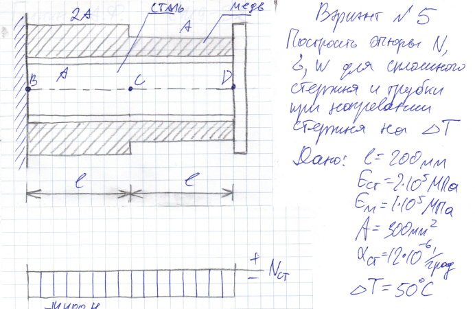 Вариант 5 - Растяжение-Сжатие - Задача 2.1