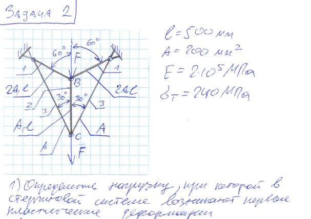 Типовой расчет по сопротивлению материалов №2 "Растяжение-сжатие", задача № 2.2, зачтено