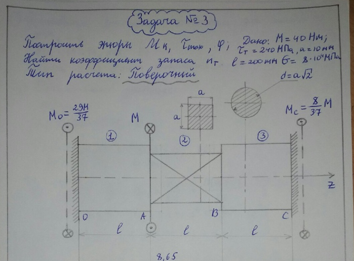 Типовой расчет по сопротивлению материалов №2 "Кручение", задача № 2.3, зачтено