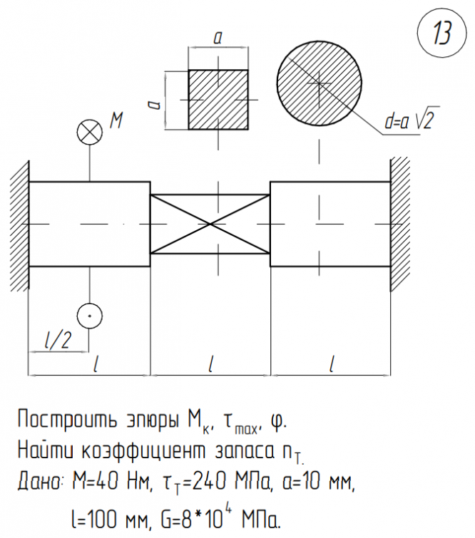 Вариант 13 - Кручение - Задача 2.3