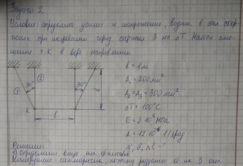 Типовой расчет по сопротивлению материалов №2 "Растяжение-сжатие", задача № 2.1, зачтено