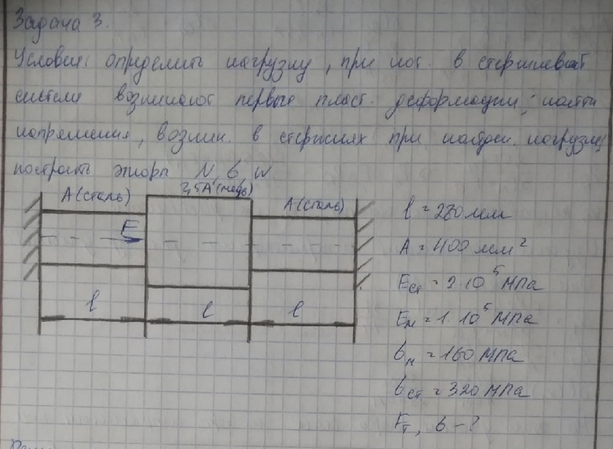 Типовой расчет по сопротивлению материалов №2 "Растяжение-сжатие", задача № 2.2, зачтено