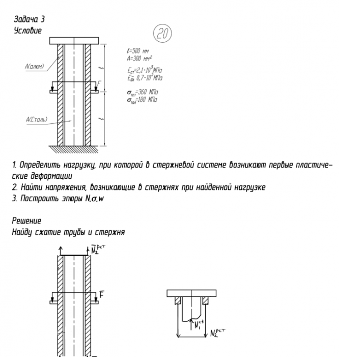 Типовой расчет по сопротивлению материалов №2 "Растяжение-сжатие", задача № 2.2, зачтено