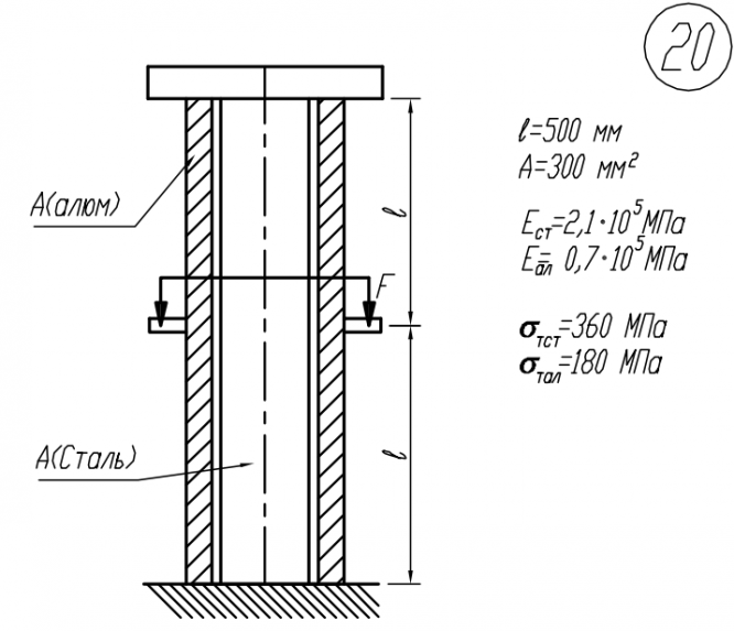 Вариант 20 - Растяжение-Сжатие - Задача 2.2