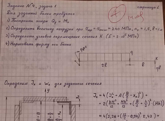 Типовой расчет по сопротивлению материалов №3 "Статически определимые балки", задача № 4.1, зачтено