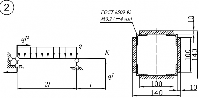 Вариант 2 - Прямой изгиб - Задача 4.1