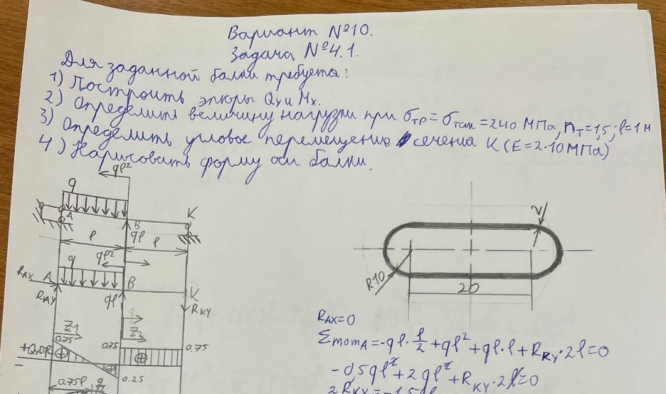 Вариант 10 - Прямой изгиб - Задача 4.1