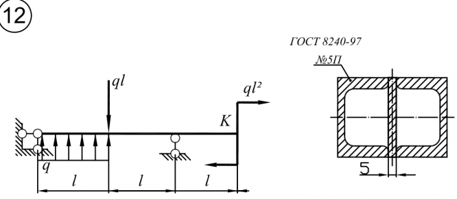Вариант 12 - Прямой изгиб - Задача 4.1