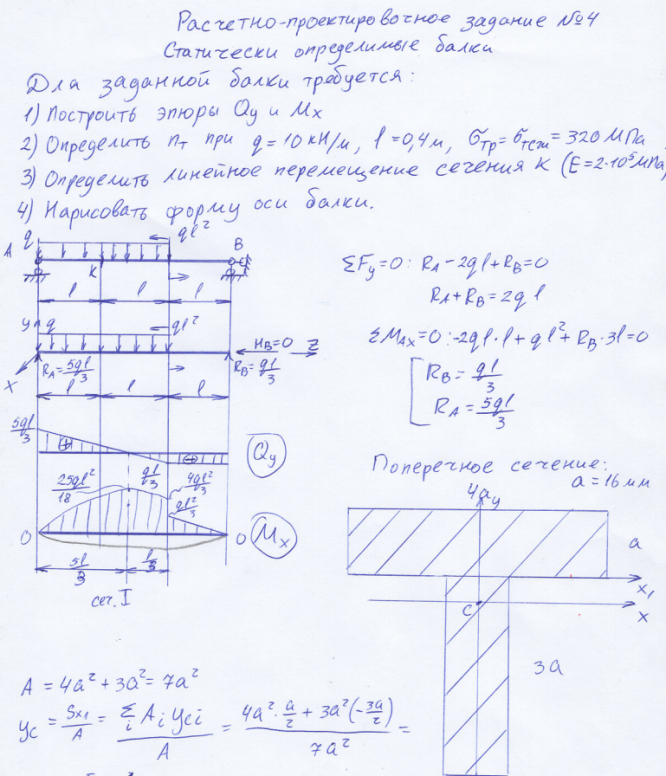 Типовой расчет по сопротивлению материалов №3 "Статически определимые балки", задача № 4.1, зачтено