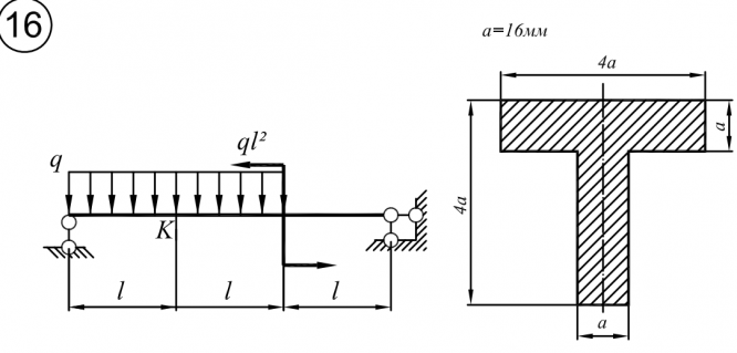 Вариант 16 - Прямой изгиб - Задача 4.1
