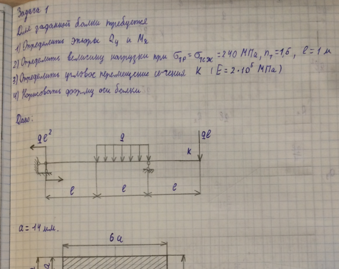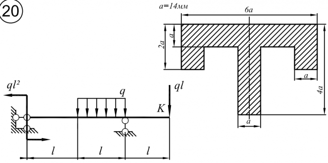 Вариант 20 - Прямой изгиб - Задача 4.1