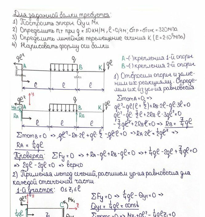 Вариант 20 - ДЗ №3 - Статически определимые балки - Задача 1.pdf