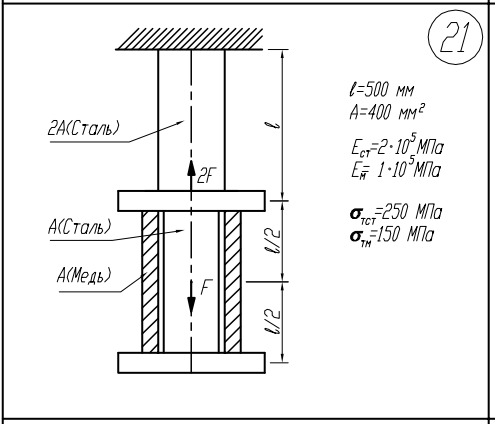 Вариант 21 - ДЗ №2 - Растяжение — сжатие - Задача 2