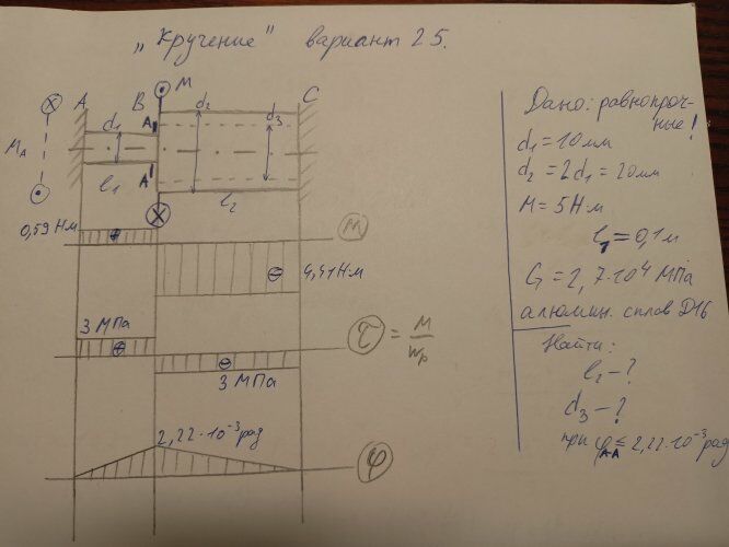 Вариан 25 - ДЗ №3 - Кручение