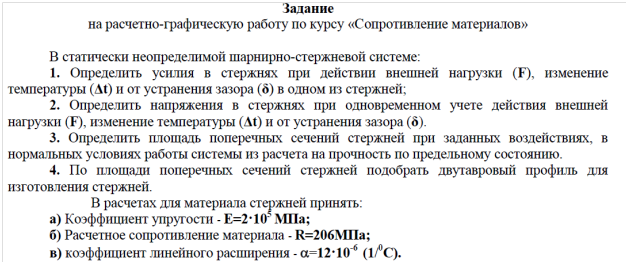 Задача: Расчетно графическая работа. Рассчет статически неопределимой шарнирн- стержневой системы Вариант 275