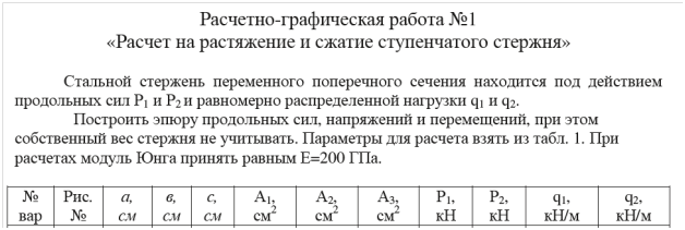 Задача: Расчетно графическая работа 1. Рассчет на расяжение сжатие-сжатие ступенчатого стержня