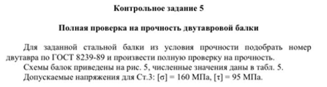 Задача 5: Полная проверка на прочность двутавроыой балки