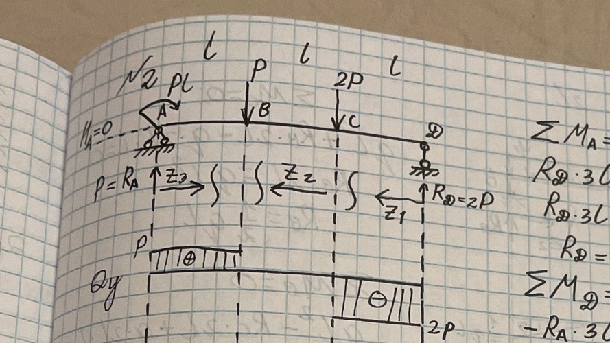 Типовой расчет по сопротивлению материалов №1, 1 задача: "Построение эпюр внутренних силовых факторов", зачтено