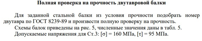 Задача: Полная проверка на прочность двутавровой балки
