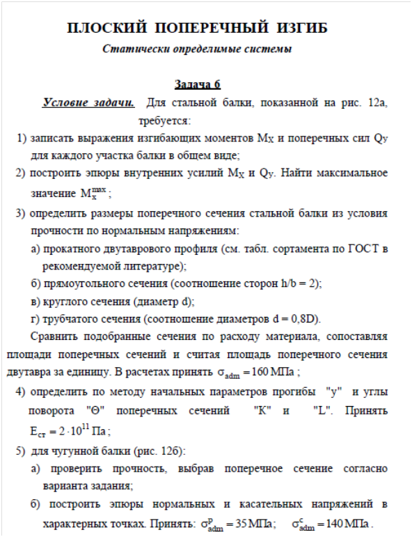 Задача 6: Плоский поперечный изгиб. Статически определимые системы