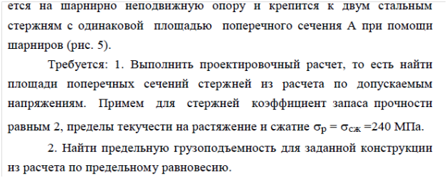 Для студентов по предмету Сопротивление материаловПроектировочный расчет стержней, удерживающих брусПроектировочный расчет стержней, удерживающих брус