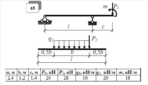 Задача: Расчет статически определимых стержней на изгиб. вариант 45