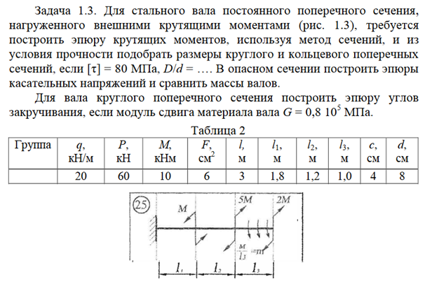 Задача 1.3: Построение эпюр внутренних силовых факторов при кручении