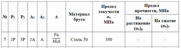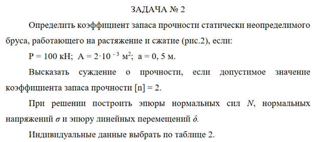 Задача 2: Определить коэффициент запаса прочности статически неопределимого бруса, работающего на растяжение и сжатие вариант 37
