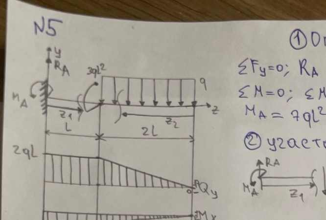 Вариант 6 - Построение эпюр внутренних силовых факторов - Задача 5