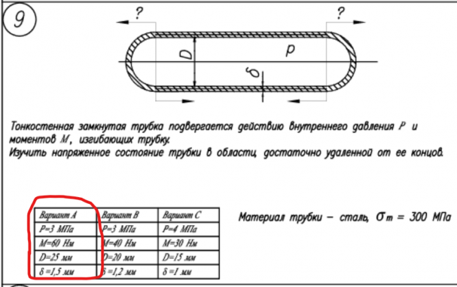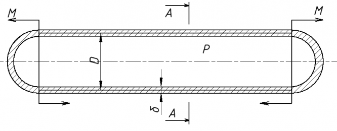 Тонкостенная замкнутая трубка подвергается действию внутреннего давления Р и моментов М, изгибающих трубку. Изучить напряженное состояние трубки в области достаточно удаленной от его концов.