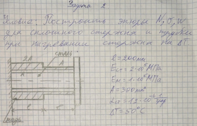 Типовой расчет по сопротивлению материалов №2, 1 задача: "Растяжение — сжатие", зачтено