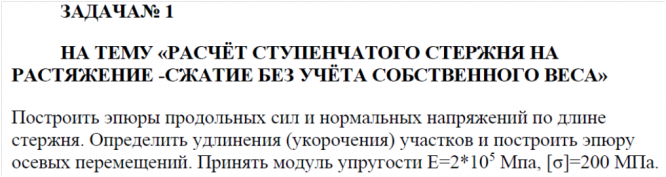 Задача 1: Расчет ступенчатого стержня при растяжении сжатии