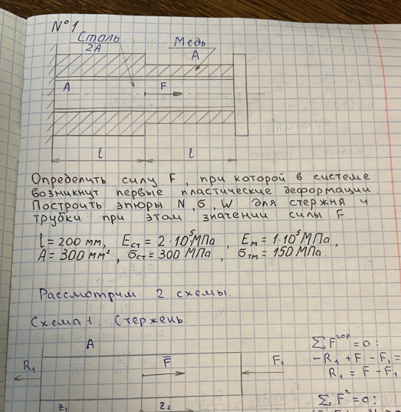 Типовой расчет по сопротивлению материалов №2, 1 задача: "Растяжение — сжатие", зачтено